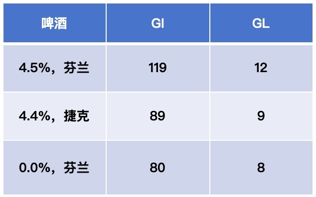 啤酒的血糖生成指数相当高,有的甚至比葡萄糖还要高。虽然啤酒喝起来不甜,但其中的麦芽糖和其他碳水化合物会迅速转化为葡萄糖。不信,看看啤酒的升糖能力,甚至有的比葡萄糖还高。(这种饮料喝着不甜,但升糖能力超高!很多人不知道还天天喝)